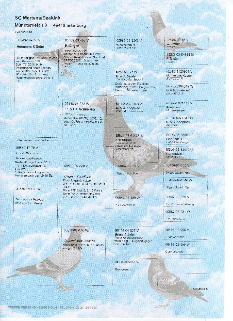 Franz Josef Mertens stellt mit diesem Jährigen Vogel den Besten Jährigen in Deutschland mit 14/14 Preisen und 5250 Preiskilometer.