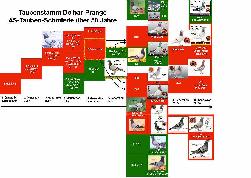 - From the “727” (double-grandson “864”) a son 13/11 flies with the SG Haas / Hübner, a son is in 2017 at the SG Kersting best young pigeon with 5/5, another daughter flies the first prize free flight Gain.