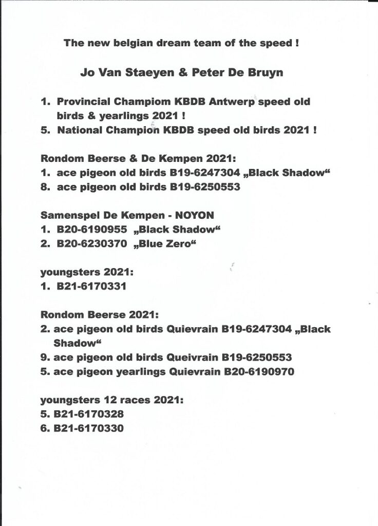 Super Star Gouden Duif im Monat April/Mai gewonnen durch “Black Shadow”, Bruder “Black Shadow” und einem Sohn “Black Shadow !