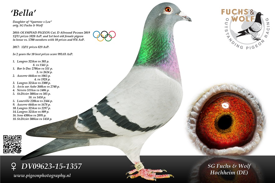 Let’s start with perhaps the best female, the 09623-15-1357, called Bella. She has flown incredibly well. In 2017, she will make 11 prizes in 13 appearances, and in January 2018, 11 prizes will be awarded to 12 stakes with many top prices. The reward for these outstanding prizes: The 1357 is an Olympic participant in Poland in the Allround category.