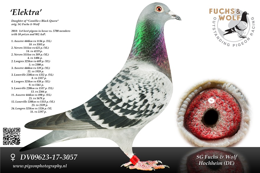 The combination Fuchs and Wolf was in the travel year 2018, the overwhelming blow in Hesse. This performance was crowned with the 1st place at the Hessen championship in 2018. The coloft of the combination, which starts under the name Sandra Müller, was able to occupy second place with only three ACE points. Together, these two beats made the best bird, the best female and the best female in Hesse. After ace points, it was even the top three pigeons. And all in the competition against over 50,000 pigeons. A truly fantastic result!