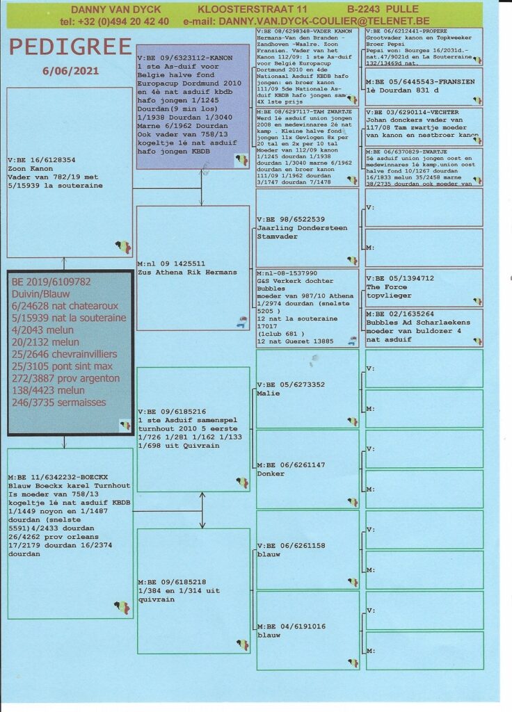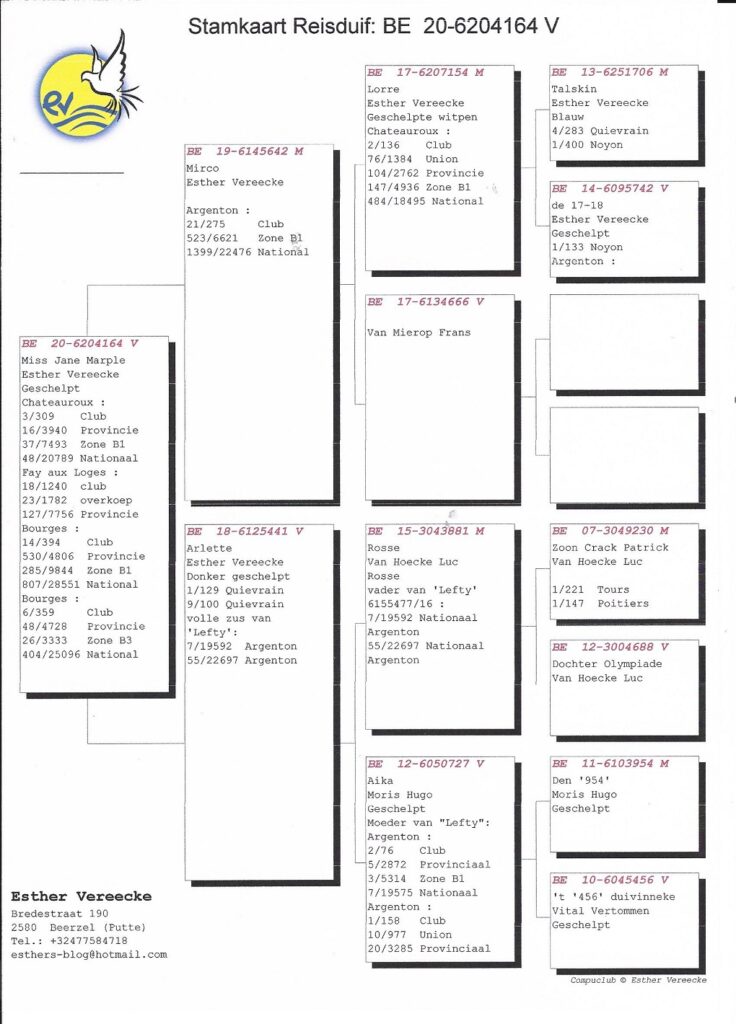 The 12th national vs. 22,196 year olds (14th fastest of 46,824 pigeons) was recorded by the "pigeon lady" Esther Vereecke,