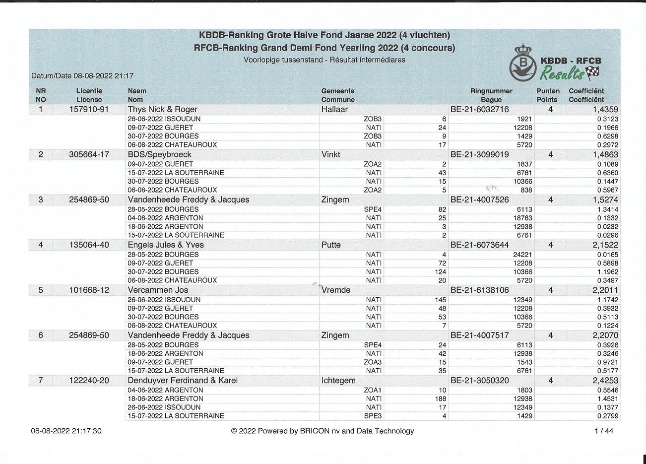 With the yearling hen ACE KBDB Large Medium Distance B21-6032716, Roger & Nick have put the crown on the super successful travel season 2022.