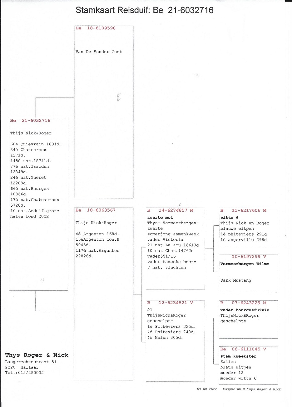 The successful Roger & Nick Thijs team are undoubtedly the best of the province of Antwerp on the Belgian national medium-haul flights 2022 ! No other loft in Antwerp could surpass the incredible race results of Roger & Nick on the short-medium haul as well as on the national flights.