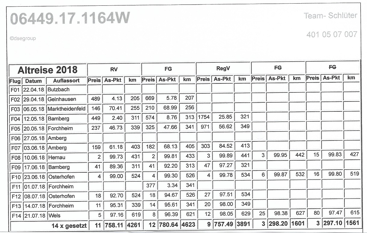 2.Ruhrgebietsflug start  Osterhofen 519 km  vs. 22.965 pigeons  16. prize !