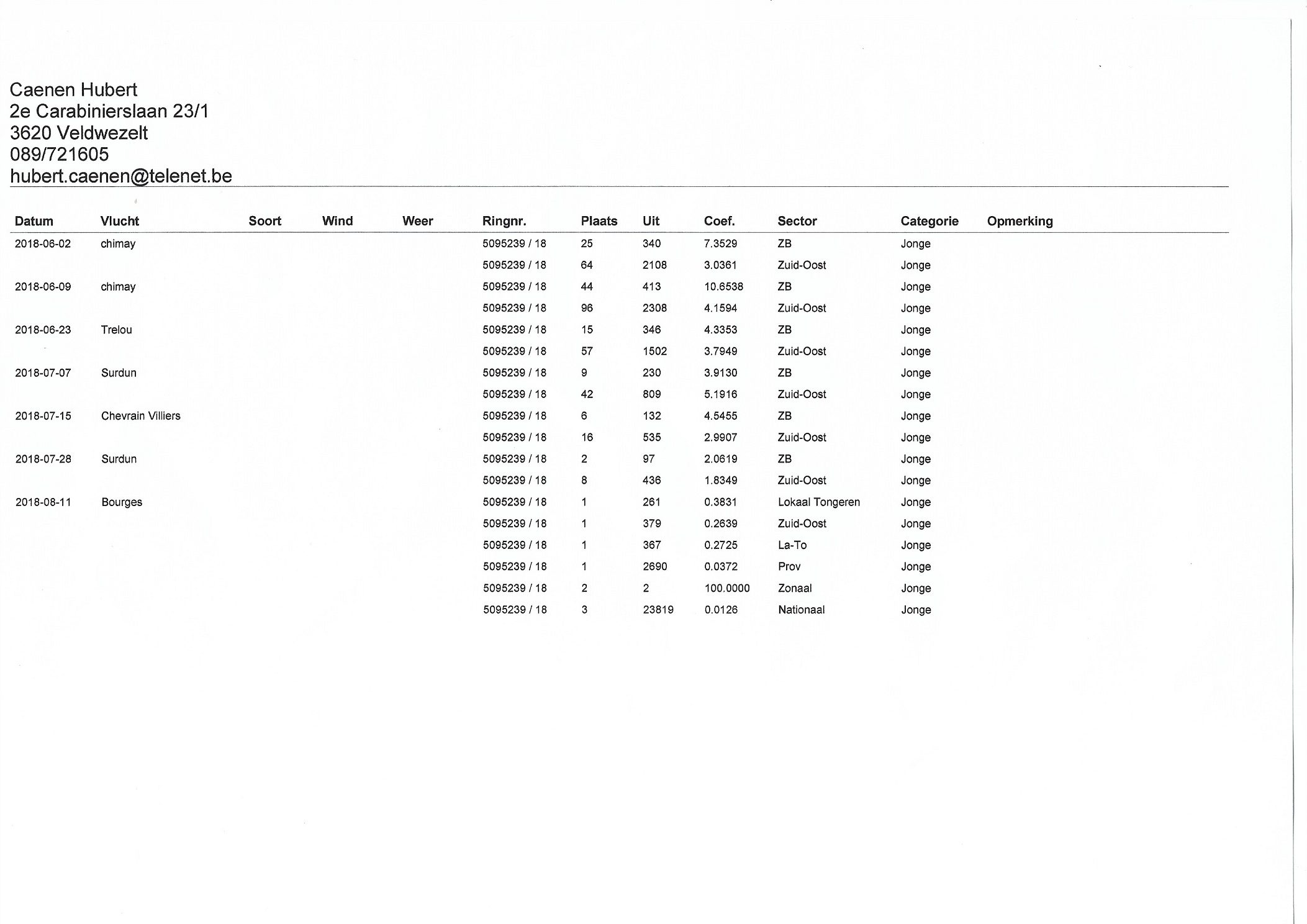Schaut man sich die Reiseleistung der B18-5095239 in den Vorwochen an wird einem sehr schnell klar das sich diese kleine Perle in Hochform befand und von Bourges mit dem 3. National vs. 23.819 Jungtauben nun den Vogel abschiessen sollte.